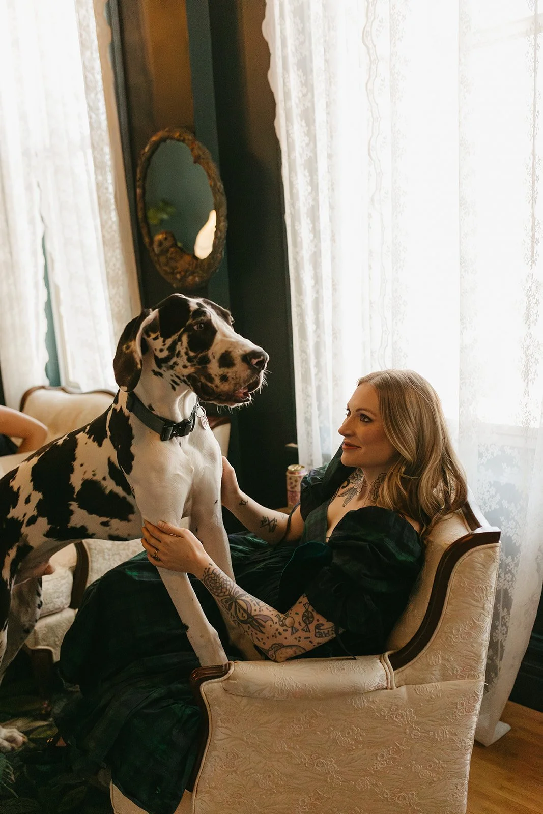 Douglas, our 6-year-old Saint Bernard, is a gentle, snoring giant who occasionally graces the spa with his sleepy presence. Usually found napping in a corner like the regal boy he is. Gregory, his 9-month-old Great Dane brother, is… not quite there yet. Chaotic, curious, and very much in his puppy era, he’s staying home while he learns what personal space means.